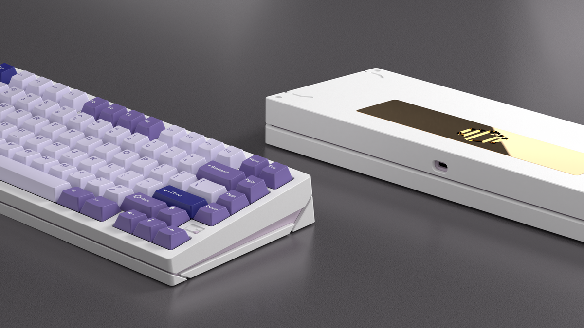 A seamless fusion of industrial precision and hidden luxury. This collection pairs a screwless aluminum chassis with a massive, mirror-polished gold weight—anchoring your setup with undeniable presence and a refined typing feel.